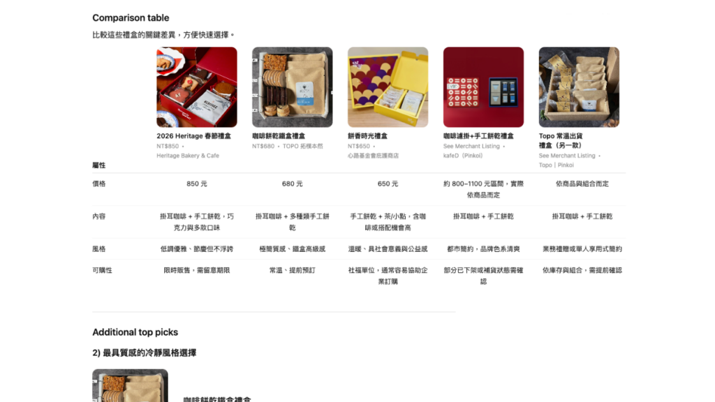 - 整理出清楚可比較的產品選項、主要差異與推薦理由