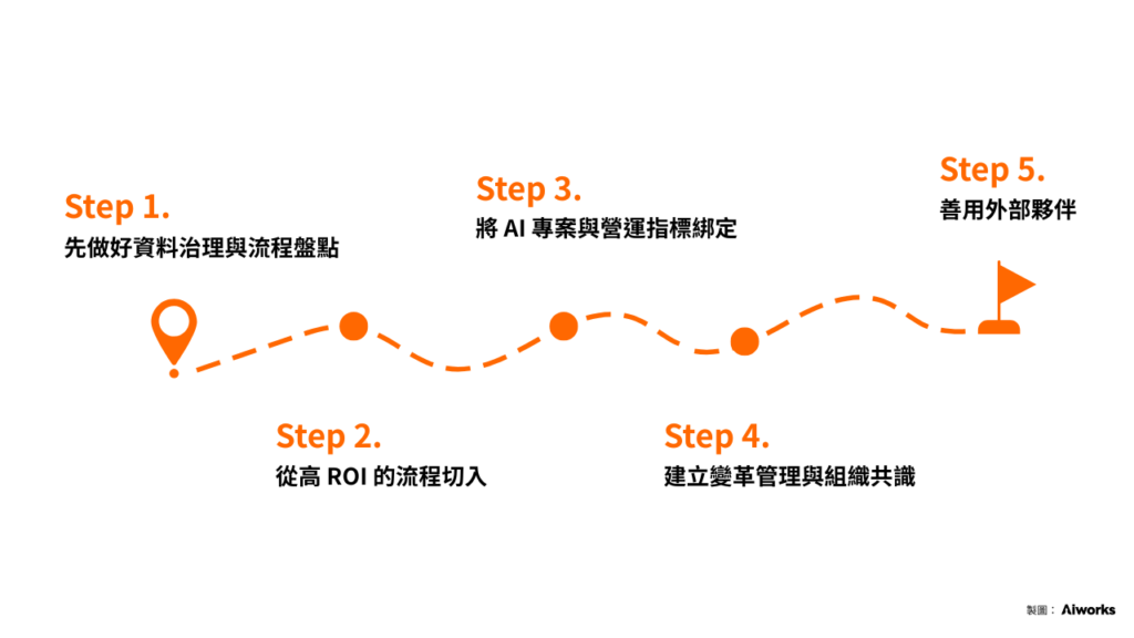 結合 MIT 報告與 Aiworks 產業輔導案例,企業若要跨越 AI 鴻溝,我們建議可從以下五點著手: